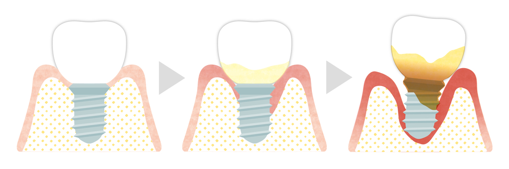 インプラント周囲炎は、インプラント周辺の骨を溶かしていく病気のことです。