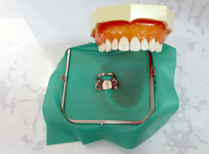 ラバーダムとは、薄いゴムシートを口の上に覆って、治療する歯だけを露出させる道具のことです。